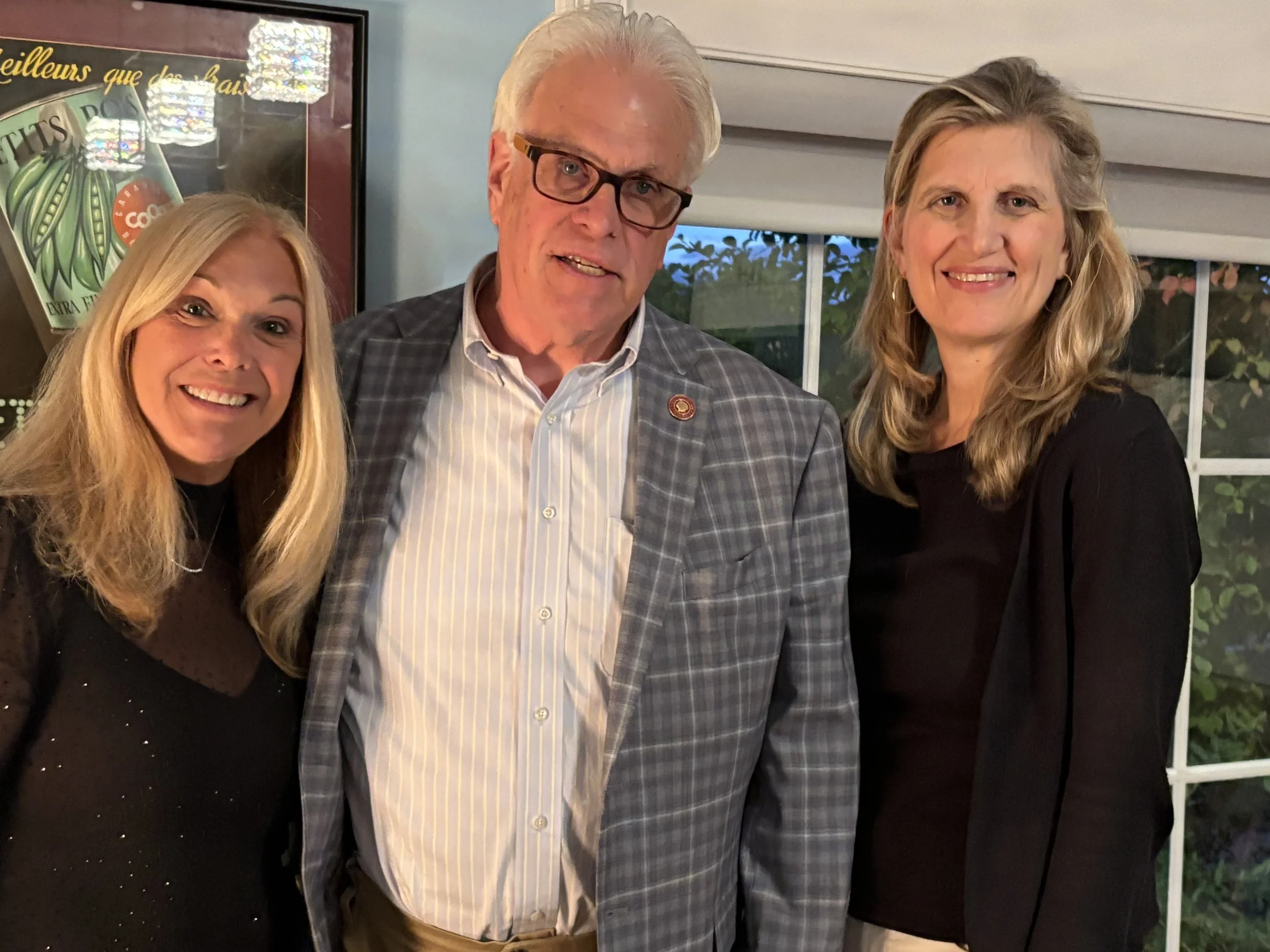 Board of Selectman candidates Cindy Collins, Dan Cunningham, and Ann Cicchiello, between bites and sips.