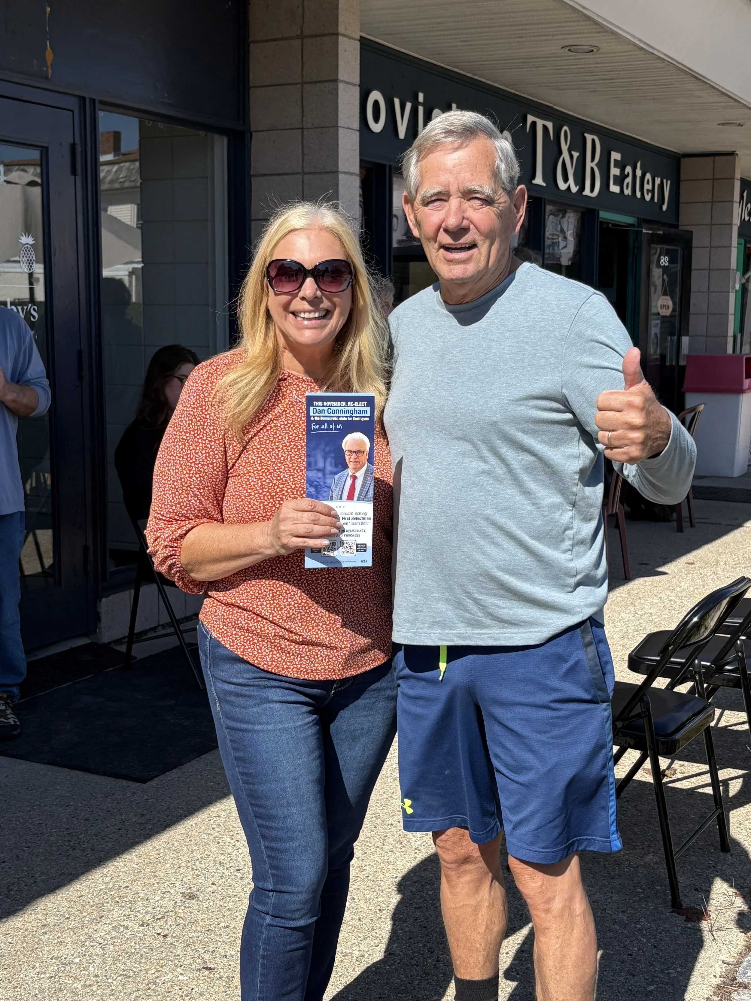 First Selectman Dan Cunningham spent time chatting with both campaign team members and local residents about the upcoming election, community priorities, and the bright future of East Lyme. Deputy First Selectman Ann Cicchiello joined the fun as well, catching up with volunteers and supporters.