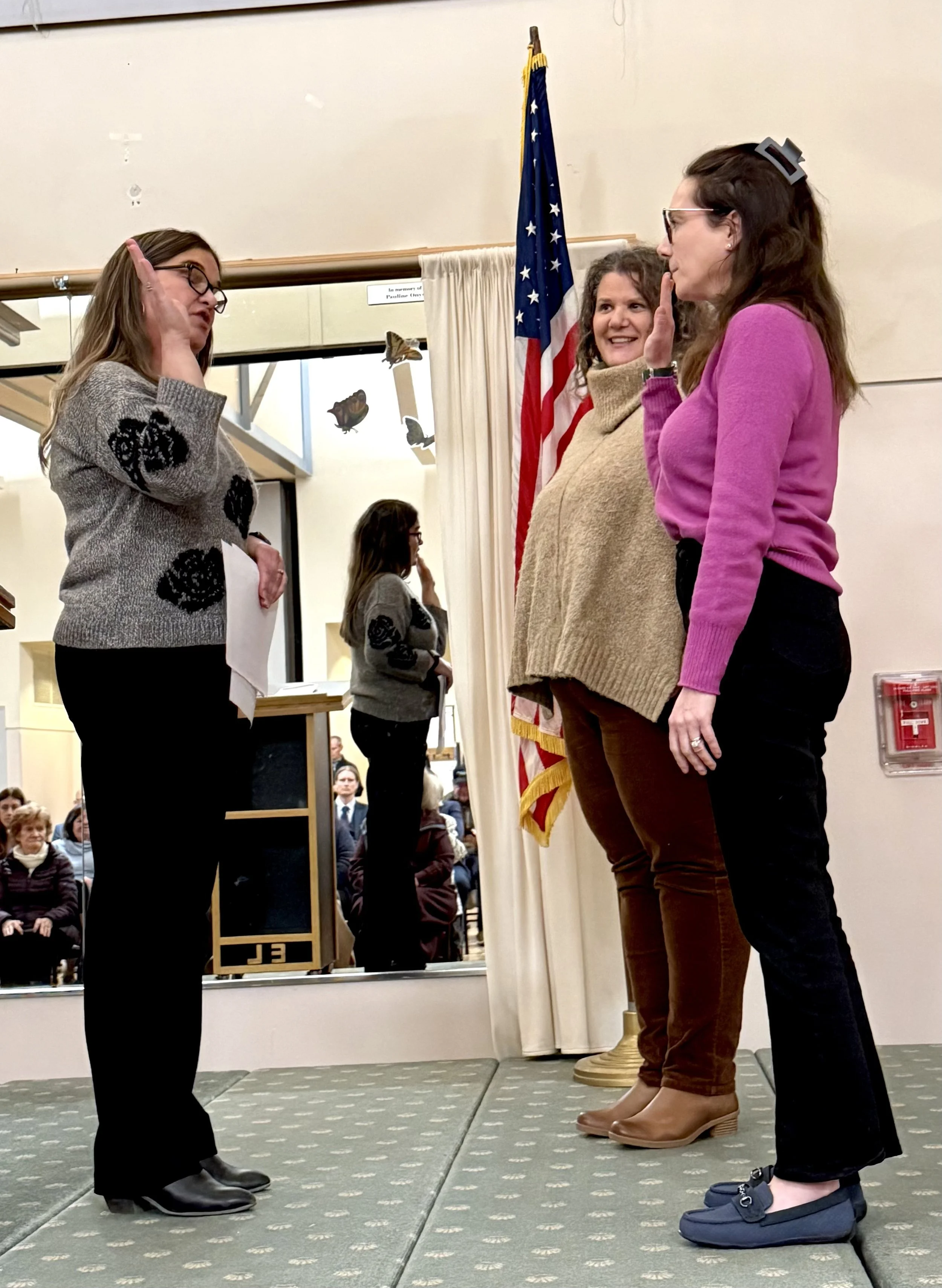 Democrats Kerry Edwards (left) and Sarah Cusco at their swearing in.
