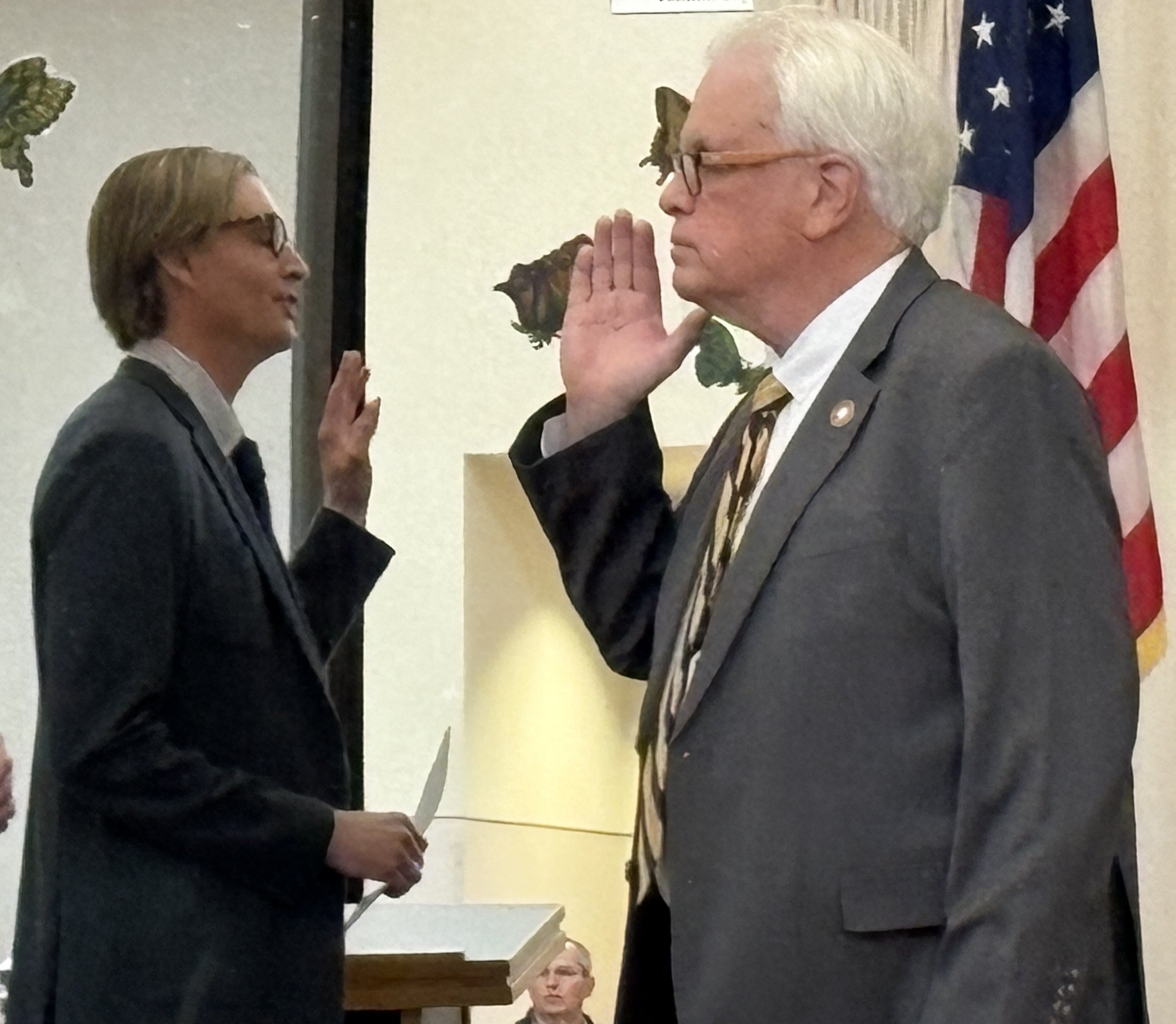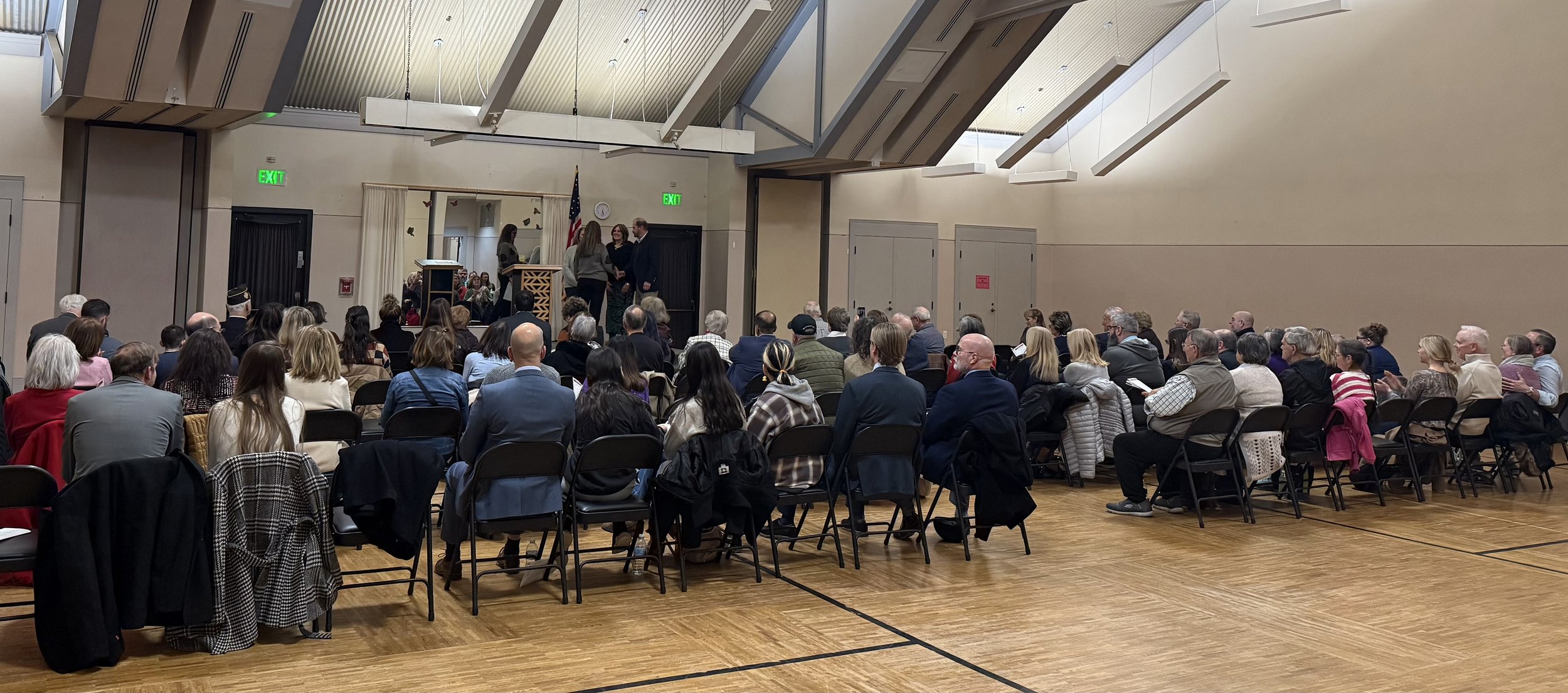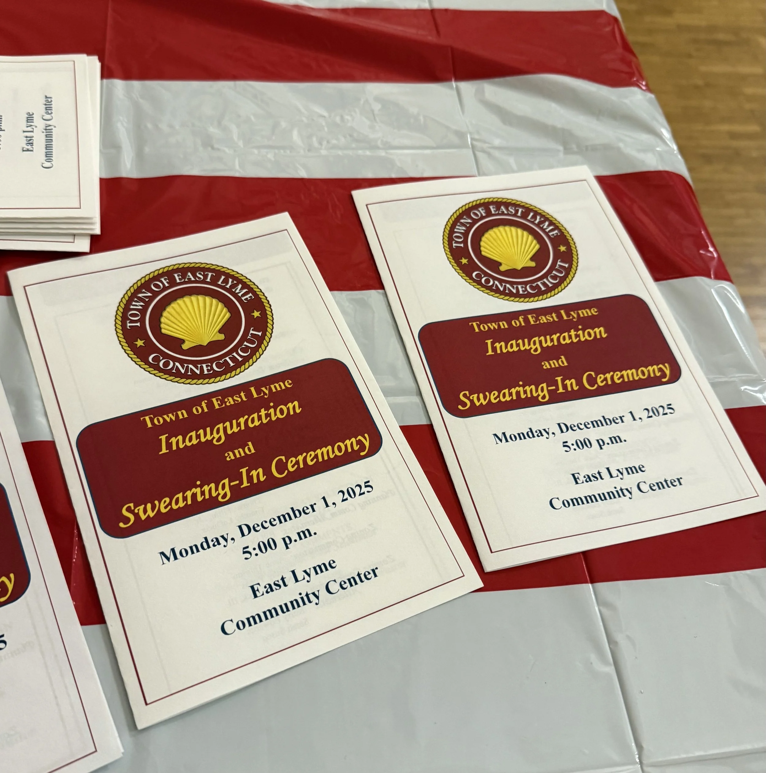 First Selectman Dan Cunningham takes the oath of office for a 4 year term following his reelection victory. The ceremony took place on December 1, 2025, at the East Lyme Community Center.